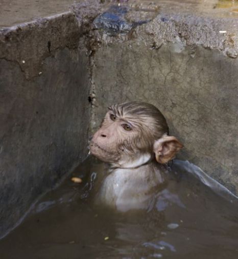 Or Humans mimicking monkey behaviour, they must have been doing this a lot longer than us i would presume. What a lighthearted peice of imformation and pictures, what espression of achievement and contentment sitting in the water, after all its really hot that part of the world. So there having fun and cooling down at the same time, clever little beggers arent they.