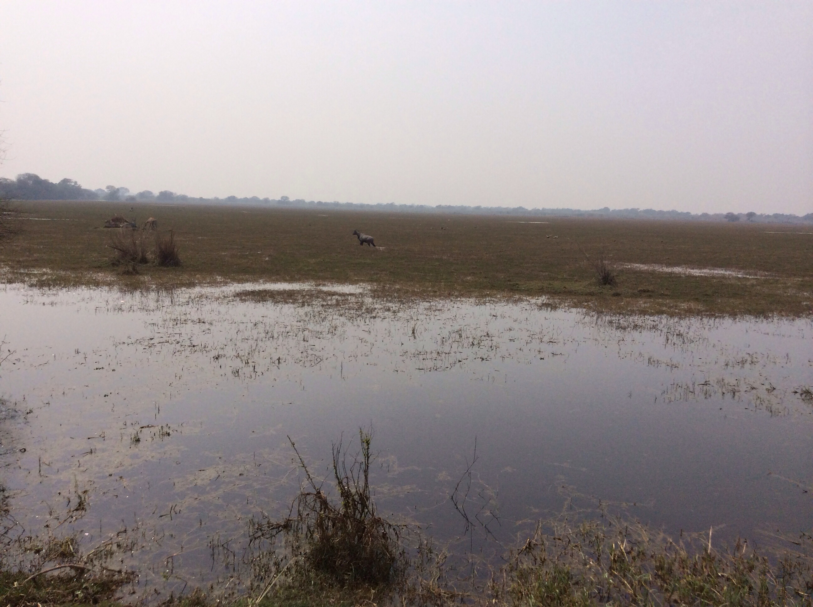 The road I was on was headed towards Python Point an area of wetland famed for specific birds and reptiles. It was here that I saw a huge antelope. As I braked to be able to take a photo he became aware he was being watched. He stopped feeding and started to make long heavy strides through the grassy water further into the lake.