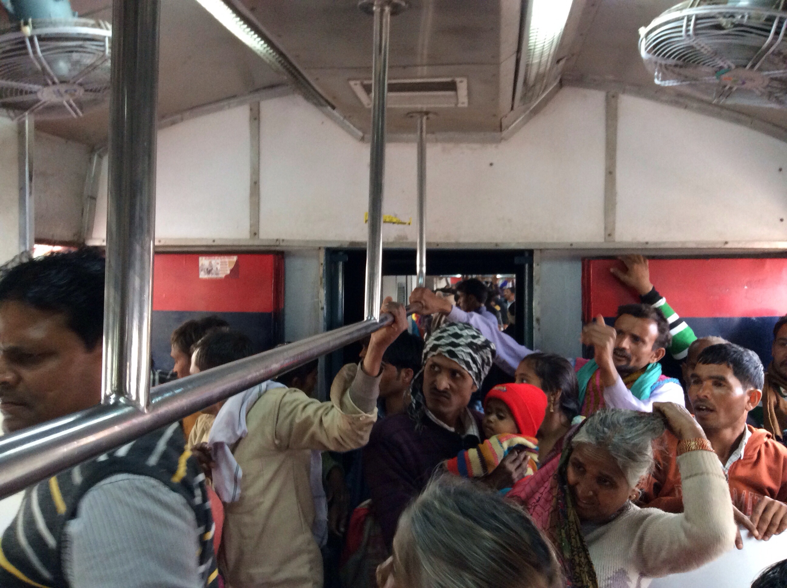 When the train pulled up nothing prepared me for the sight that ensued, it was carnage!! Pushing and shoving and grappling to get on. The entrance to the carriage is narrow and those trying to get off were stuck while a barrage of people were trying to force their way on. Ashok grabbed my hand and pulled me into the scrum. I watched while being jostled thinking there is no way we are getting on this. One man got stuck. His bag wedged into the gap where people were trying to fit. Insults were thrown and hands went up and onto the bag to push him in. Women and children getting off were literally grabbed and hurled off like luggage being loaded on the tarmac of an airport? This sort of behaviour is how I imagine people might react trying to escape a burning building…….. blatant regard for anyone other than one’s self.