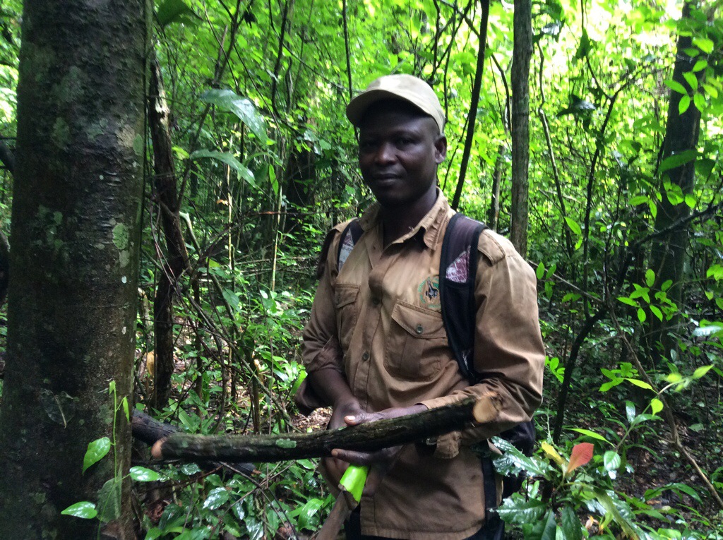 In the morning, UC and I were meeting Moses Lemi, my old field assistant and forest-husband at nine o’clock. He was bang on time and gave me a rather sheepish grin from under his cap and I bounded towards the Banda to greet him. Giving him a huge bear hug we briefly caught up. He’s been busy. He now has 6 children, the seeds from the apples I gave him didn’t grow, but his garden is looking good he told me.