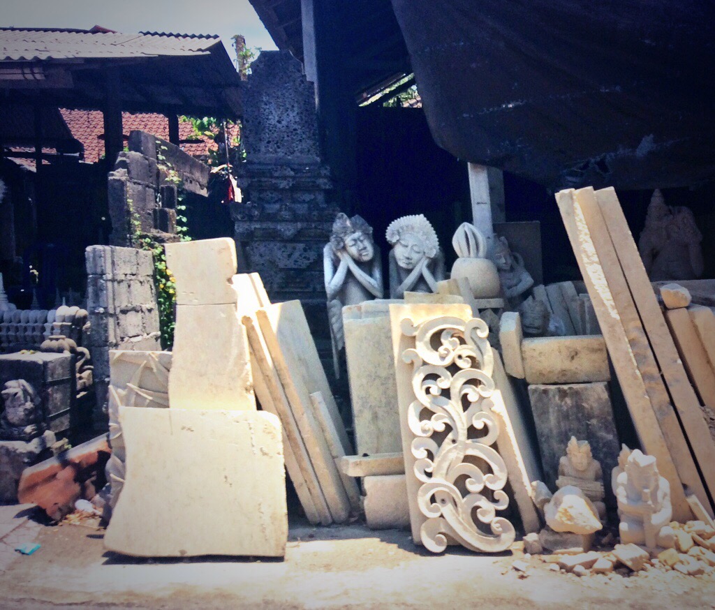 The drive to Ubud takes you along fields of rice as well as lovely green hills and then you hit temple central and all the statues you can imagine of every size and made of every material.