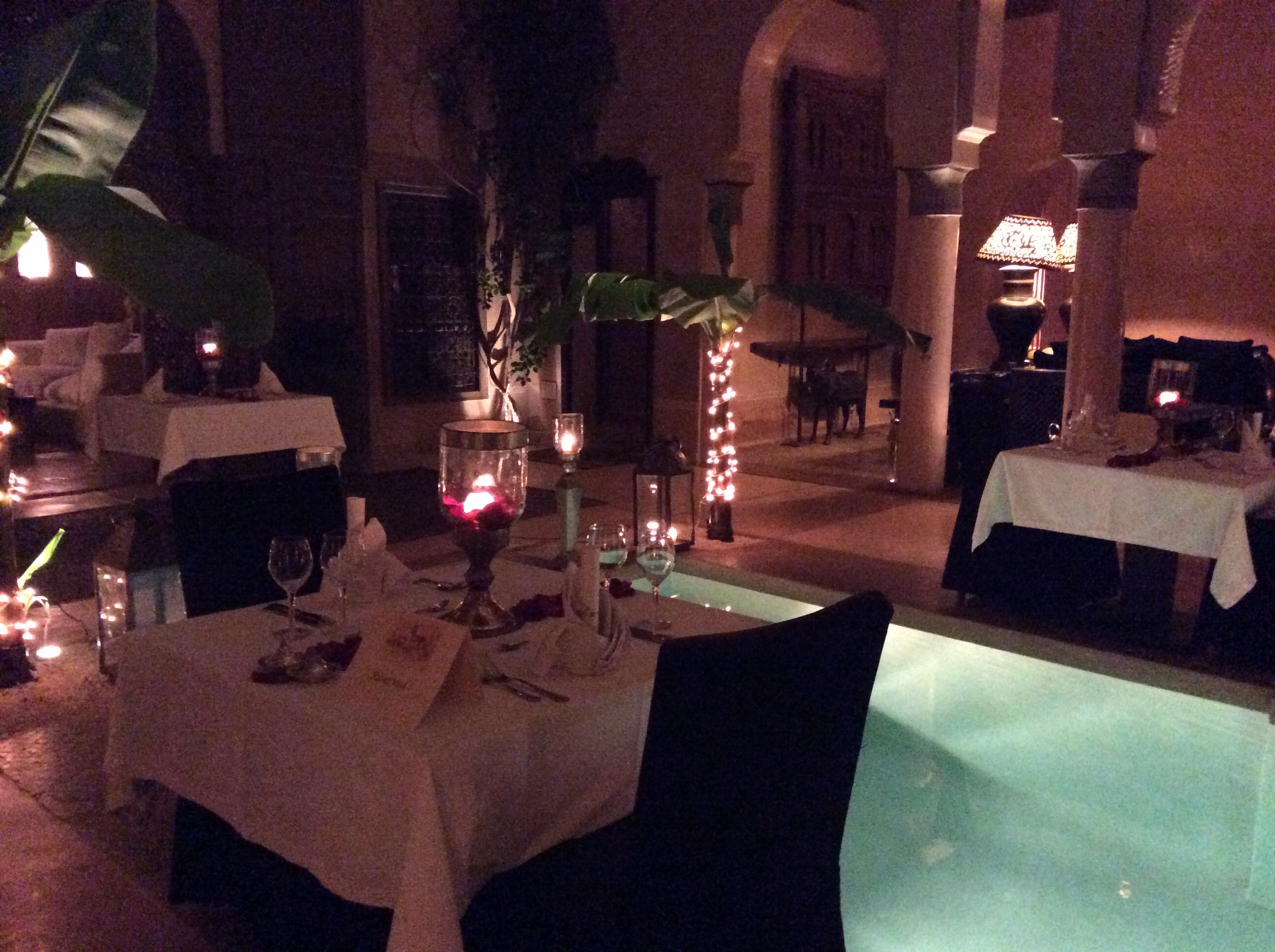 I have never been collected on foot before and done the whole walking “mini bus”. It made for an interesting start to the night. We were taken down a labyrinth of narrow streets flanked by high walls. There was no way on earth we would have found the riad it was so well hidden. Right then left, then left again and right once more, the building itself didn’t have a sign or a number outside it either. Inside it is a beautiful oasis which has been decorated by British designer called Jill Fetchtmann. She has done an amazing job. It is filled with African art and the result is simple, tasteful and very elegant. We sat in the atrium and took in the palace-like surroundings. The decor was spectacular, the food not so much. But after two bottles of Cab Sav it made little difference. We saw in 2015 squiffy, full and staggered back through the maze of roads to our guest house shortly after midnight.