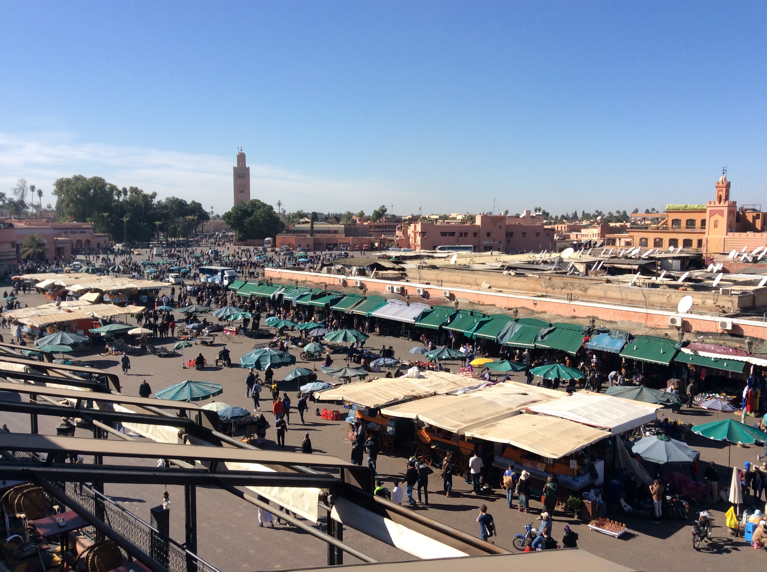 Our digs are off the famous Jemaa El Fna square which is absolutely bonkers. The centre piece is a strip which is filled with stalls of all types of street food. You can get everything from hard boiled eggs, whole roasted lamb on a spit to snails and boiled sheep head. It is cited by some as the biggest open air eatery in the world with some 100 stalls every night. The scene is bedlam and the smells are insane.