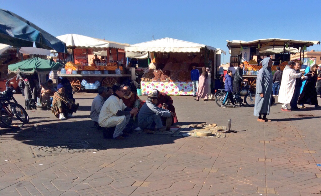 Jemaa El Fna is surrounded by pretty pink building set against a vivid clear blue sky. Performers from musicians, to acrobatics and storytellers all manage to pull a crowd. There is growing concern that the art of storytelling is dying because young Moroccans are not interested in carrying on the tradition. The younger generation is more interested in television and the internet and these famous old stories are being lost forever. They say when a storyteller dies it is like a library burning.