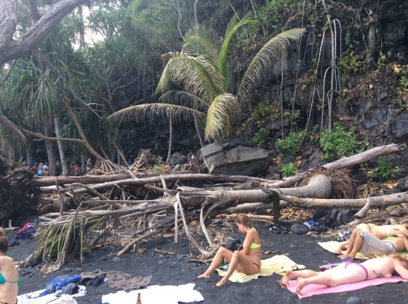 I’m on the Big Island which has many faces: black sand, white sand, lush green vegetation, waterfalls, volcanic rock and a powerful ocean with incredible waves and current. I’m in awe at the fauna and flora – so many stunning birds – although not a non human primate in sight!!