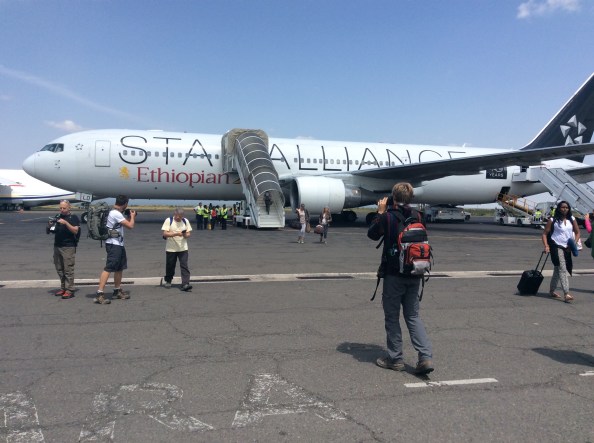 I had been pacing carefully up and down watching for a free table to sit and eat something. You have to move fast if you want to bag a seat. I ducked into a tiny space at the back of cafe sharing a broken table with an Ethiopian couple. I’m stuffed down a mushroom omelette, sipping hot, strong coffee ahead of my leg to Kilimanjaro airport.