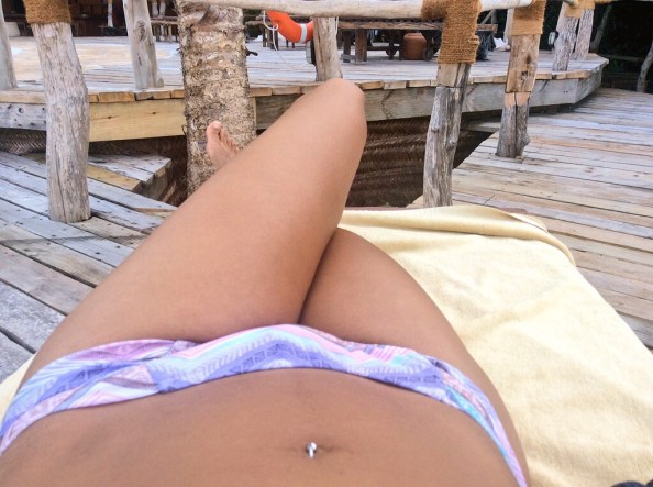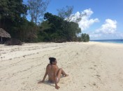 I’ve been gagging to come here for years but never dreamt I’d be able to afford it. At almost 40 I’m thrilled to have four nights in totally unspoilt luxury. The other people here are honeymooners and then us. The staff are wonderful, all of them locals from the island. They have been trying to help me improve my Swahili. The property has been running for 16 years giving them a steady source of employment. The brains behind this venture is a British designer.