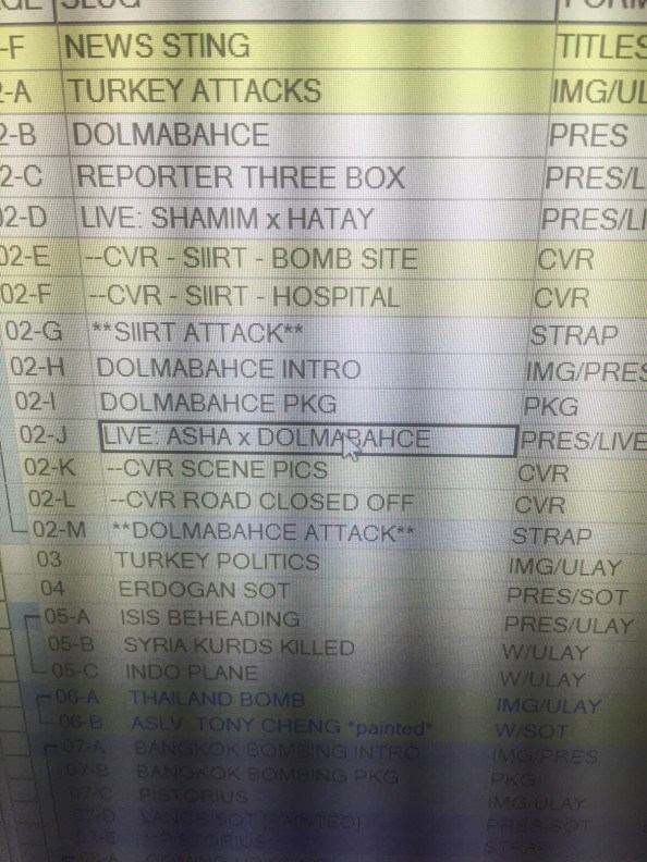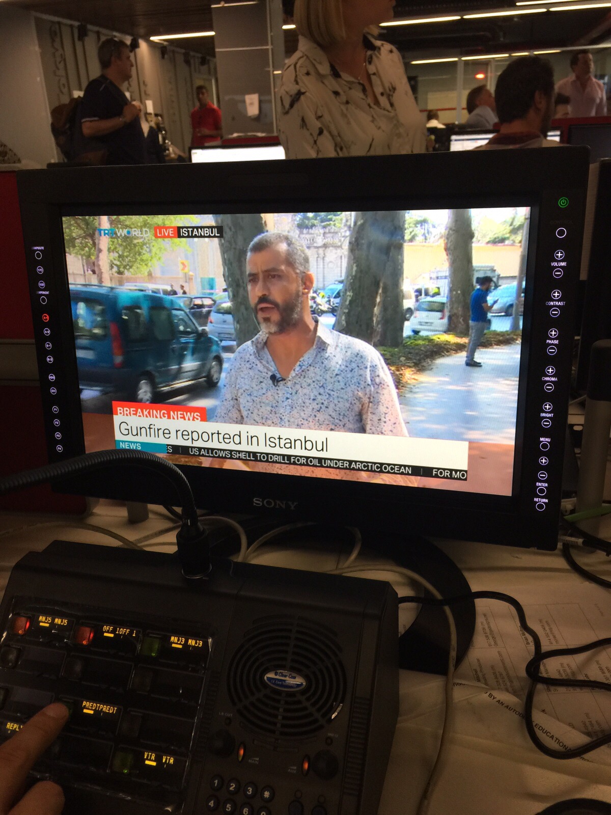 Deployed to the scene were a field producer, translator and camera man. I didn’t make it in time to do the first live hit for the first bulletin so my field producer was shoved infront of the camera.