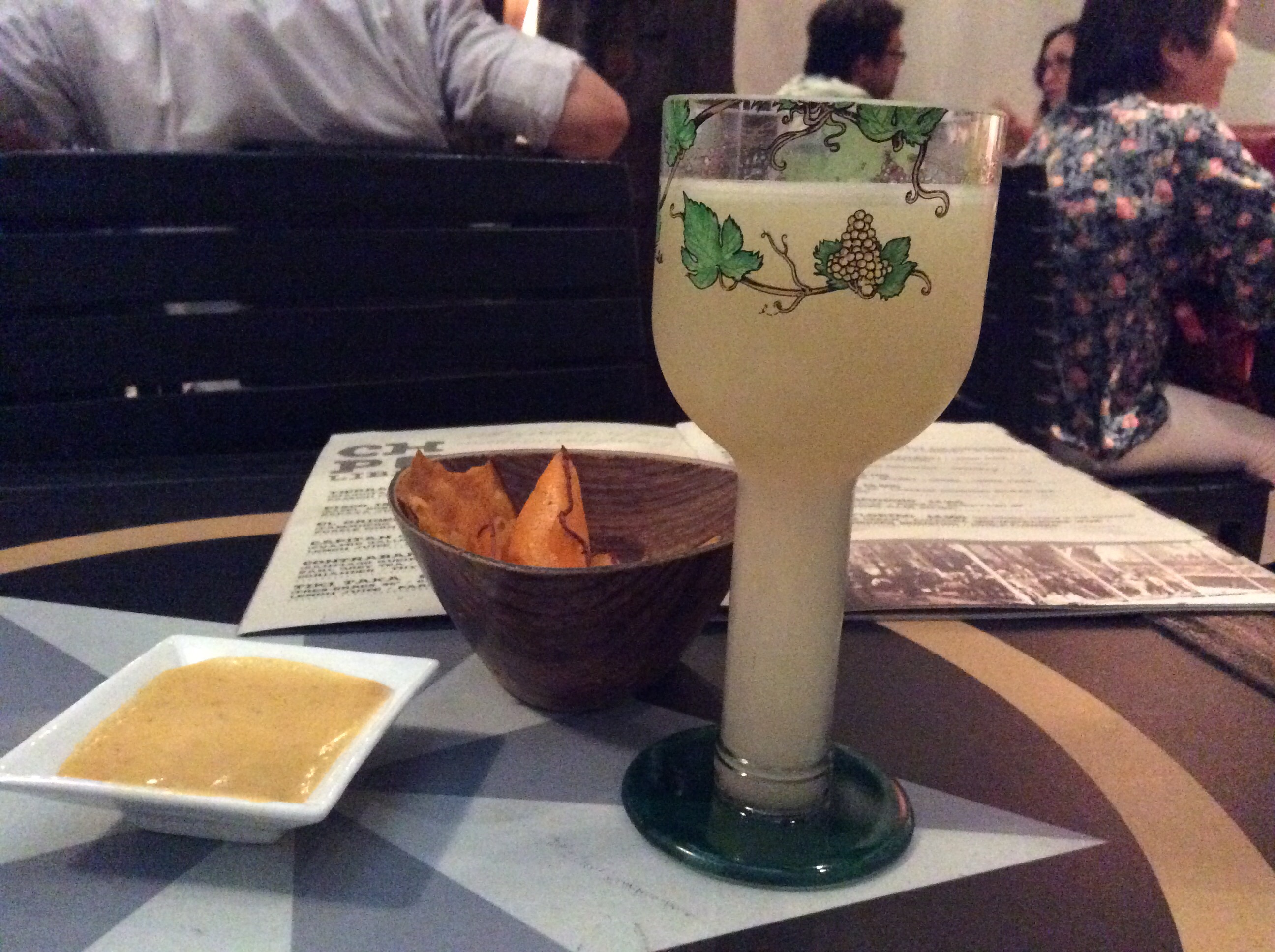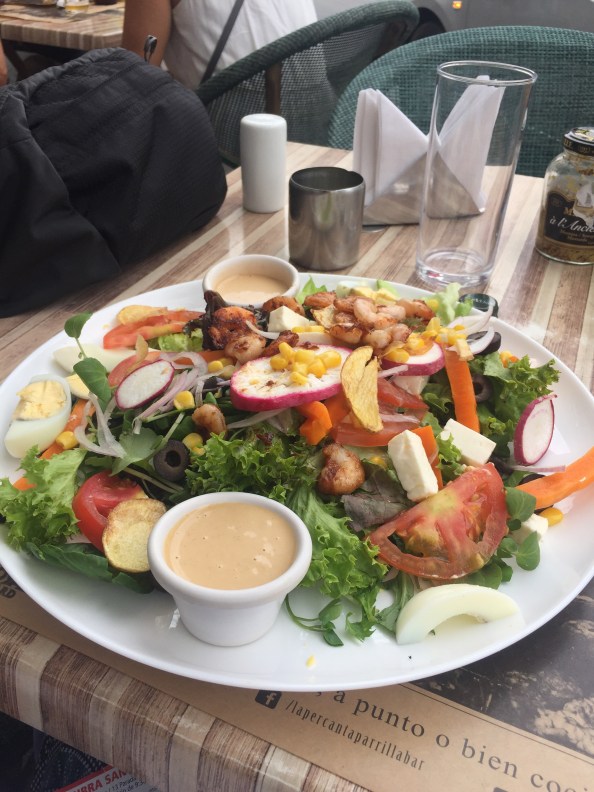 I dumped my things flung on my hobo pants and Birkenstocks and set off to pound the streets. So far I have eaten empanadas, a shrimp salad, drunk a cortado, bought a SIM for my phone which a lovely man in the metro helped me to activate. Walked up to the highest point of the municipal park, listens to some amazing Latin beats on the street and I am halfway through one bloody good Pisco Sour at an uber chic bar. I’ve already ordered a second one and some black pudding (the veggie no alcohol rule will be bent over here).
