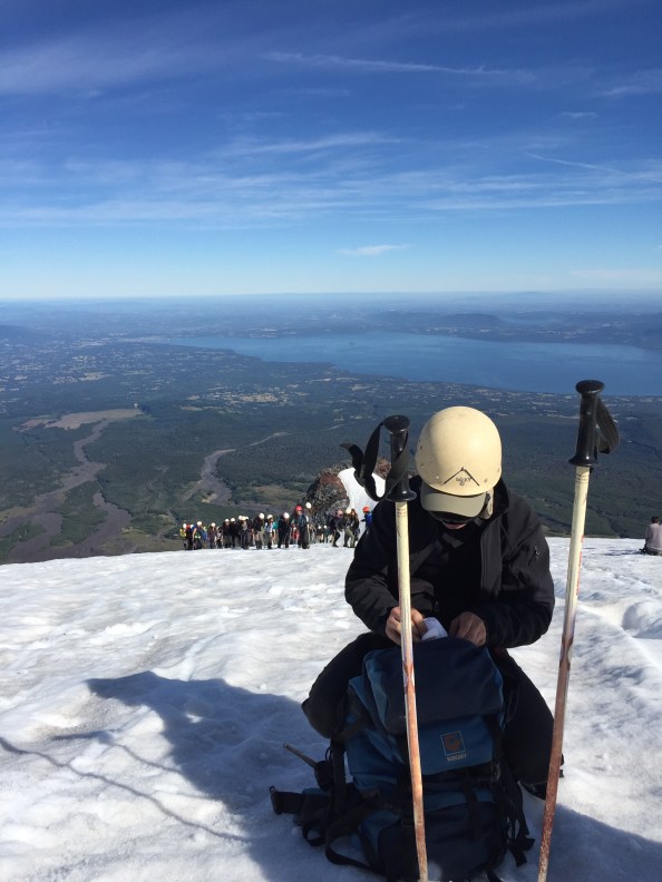 The next day I found myself hitting the alarm as it went off at 5.30am. I had somehow been sweet- talked into hiking Villarrica by one hell of a charismatic, fluent English speaking Latino called Rodrigo. What was I thinking? I hate snow! I must be nuts! The volcano’s rocky surface is covered in thick snow until the summit, where the topography has changed to exposed rock after an explosion just 10 months ago.