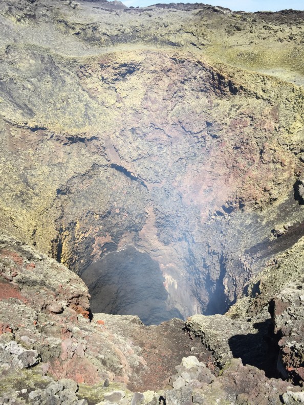 On reaching the summit the crater surface is covered in yellow/green sulphur. Imagine moss and that comes close to the effect. Smoke is billowing out of it and the rocks are hot to touch. It is magnificent and I could hardly believe after nearly 3 hours of hiking I had made it. It was challenging and Rodrigo was true to his word, watching me and encouraging me as well giving me the odd helping hand. I was grateful.