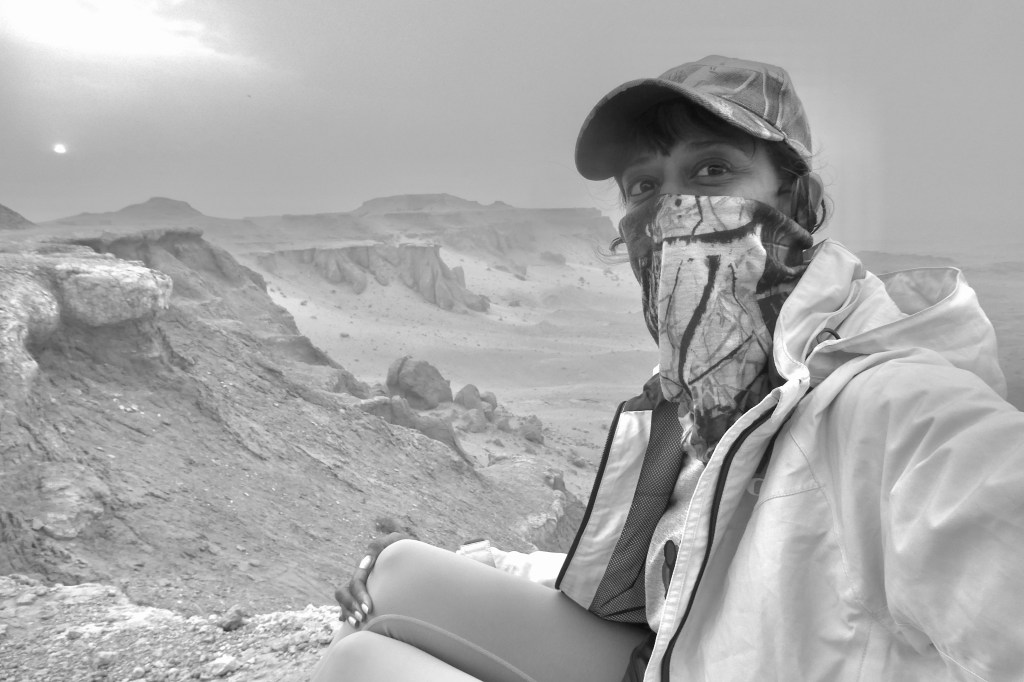The landscape is red rock, strong desert winds and a dust that hangs thick in the air. The horizon stretches forever and the cliffs blaze red in the sunlight.